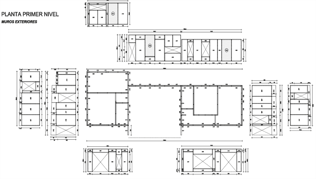 Cada muro debe estar claramente rotulado (ej. “Muro Eje 1”, “Muro Eje 2”), lo que permite ubicar con precisión cada panel en el proyecto.