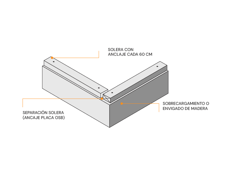 Una vez montados y alineados todos los paneles, se procede a colocar la solera superior, que cumple una función estructural clave al cerrar y reforzar el sistema.