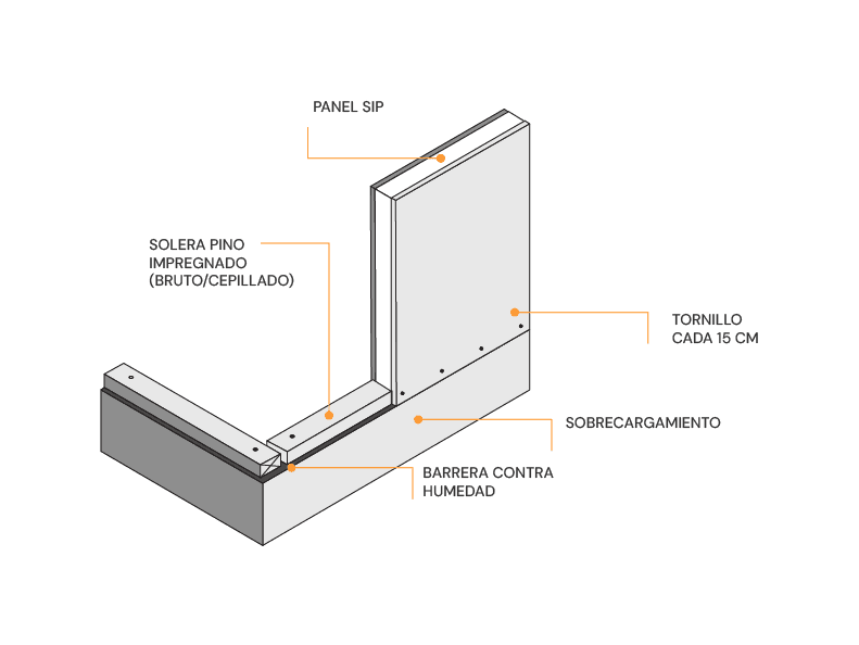 Se recomienda instalar una lámina elastomérica o de polietileno entre la solera y la losa, evitando que la humedad afecte la madera o los paneles.